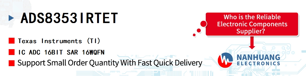 ADS8353IRTET, TI authentic parts in stock from TI authorized distributors, order today, can ship immediately.