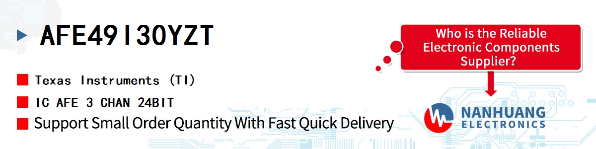 - AFE49I30YZT TI, IC AFE 3 CHAN 24BIT, Integrated Circuits (ICs)~Data Acquisition - Analog Front End (AFE)