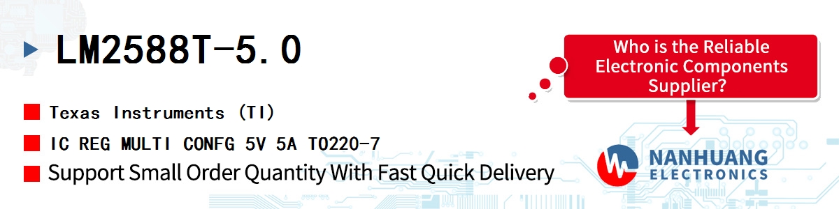 LM2588T-5.0, TI authentic parts in stock from TI authorized distributors, order today, can ship immediately.