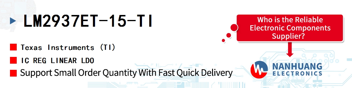 LM2937ET-15-TI, TI authentic parts in stock from TI authorized distributors, order today, can ship immediately.