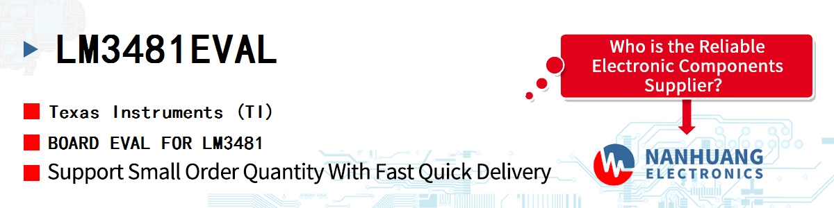 LM3481EVAL, TI authentic parts in stock from TI authorized distributors, order today, can ship immediately.