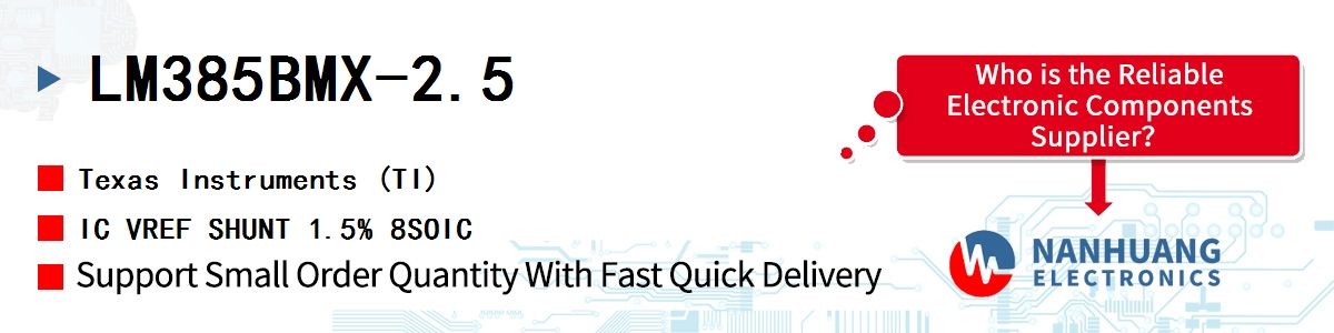 LM385BMX-2.5, TI authentic parts in stock from TI authorized distributors, order today, can ship immediately.