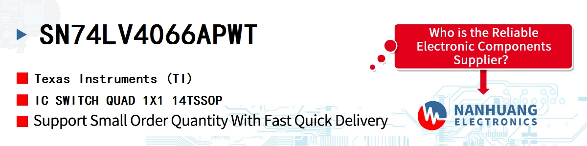 SN74LV4066APWT, TI authentic parts in stock from TI authorized distributors, order today, can ship immediately.