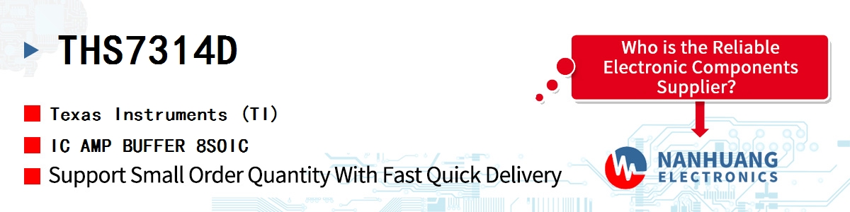- THS7314D TI, IC AMP BUFFER 8SOIC, Integrated Circuits (ICs)~Linear - Amplifiers - Video Amps and Modules