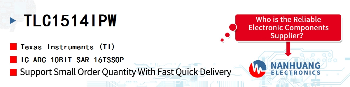 - TLC1514IPW TI, IC ADC 10BIT SAR 16TSSOP, Integrated Circuits (ICs)~Data Acquisition - Analog to Digital Converters (ADC)