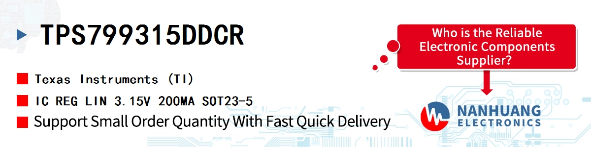 TPS799315DDCR, TI authentic parts in stock from TI authorized distributors, order today, can ship immediately.