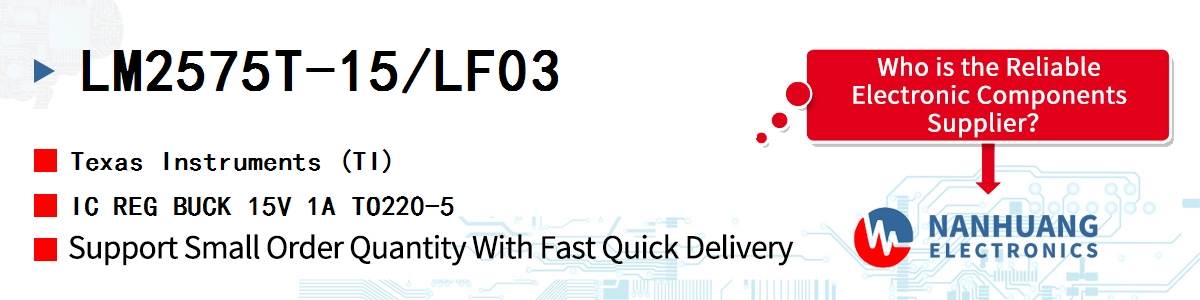 LM2575T-15/LF03, TI authentic parts in stock from TI authorized distributors, order today, can ship immediately.