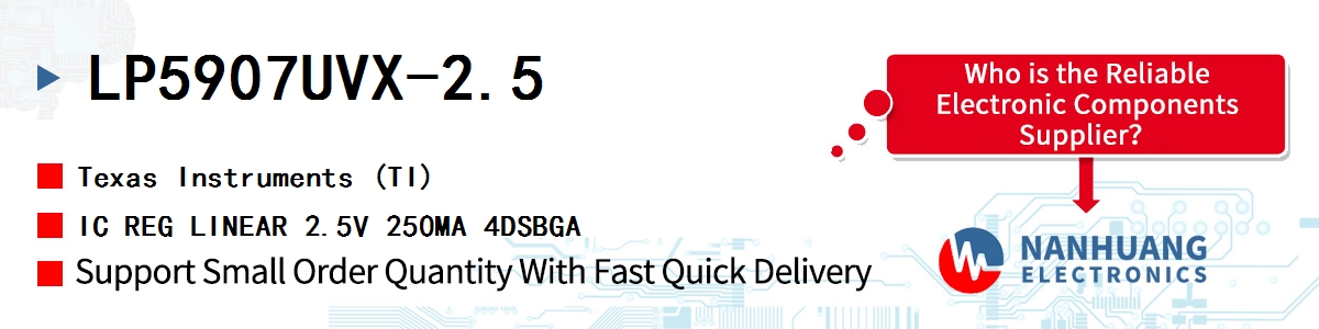 LP5907UVX-2.5, TI authentic parts in stock from TI authorized distributors, order today, can ship immediately.