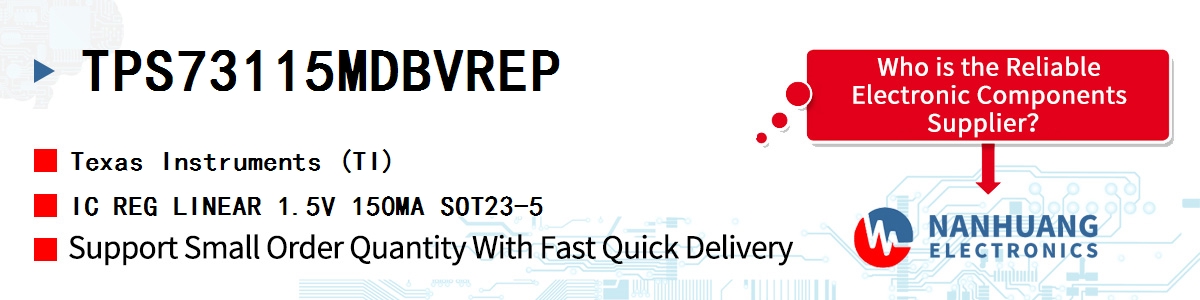 - TPS73115MDBVREP TI, IC REG LINEAR 1.5V 150MA SOT23-5, Integrated Circuits (ICs)~PMIC - Voltage Regulators - Linear