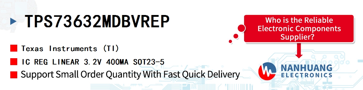 - TPS73632MDBVREP TI, IC REG LINEAR 3.2V 400MA SOT23-5, Integrated Circuits (ICs)~PMIC - Voltage Regulators - Linear